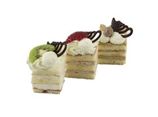 U kiest voor een gesorteerde samenstelling van slagroom, aardbeien en mokka demi gebak. De kleine gebakjes bestaan uit laagjes zachte biscuit met daartussen mokka/ aardbeien/ slagroom, afgespoten met mokka/ aardbeien/ slagroom (en vers fruit).