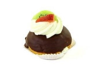 De welbekende Moorkop. Gebakken van soezenbeslag, vol met slagroom in een laag van chocolade gedoopt. De smaak van de flinke toef slagroom en fruit op de top is een genot in de mond.