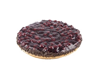 Zachte vlaai bodem gevuld met gele room en afgewerkt met een heerlijke laag kersen.