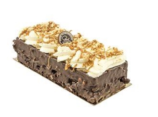 Gevuld met brownie en pindabavarois, overgoten met heerlijke chocolade en afgewerkt met slagroom, karamel en gebrande pinda’s.
