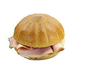 Zacht broodje met huisgemaakte dressing, slamix, coburger ham, brie en sun tomaatjes.
