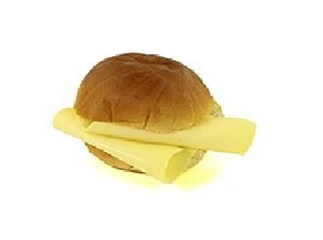 Huisgemaakte dressing, slamix, ham, kaas, komkommer, tomaat, ei op een zacht wit bolletje.