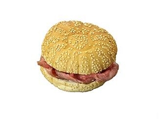 Huisgemaakte dressing, slamix, ham, kaas, komkommer, tomaat, ei op een zacht wit bolletje.